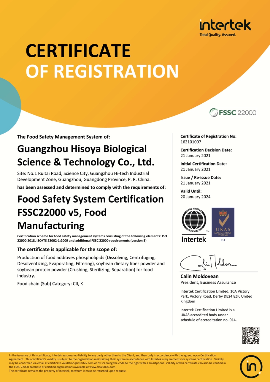 廣州海莎生物科技有限公司獲磷脂生產新專利... 廣州海莎生物科技有限公司獲磷脂生產新專利,為開發高質量磷脂 產品提供了保障。...